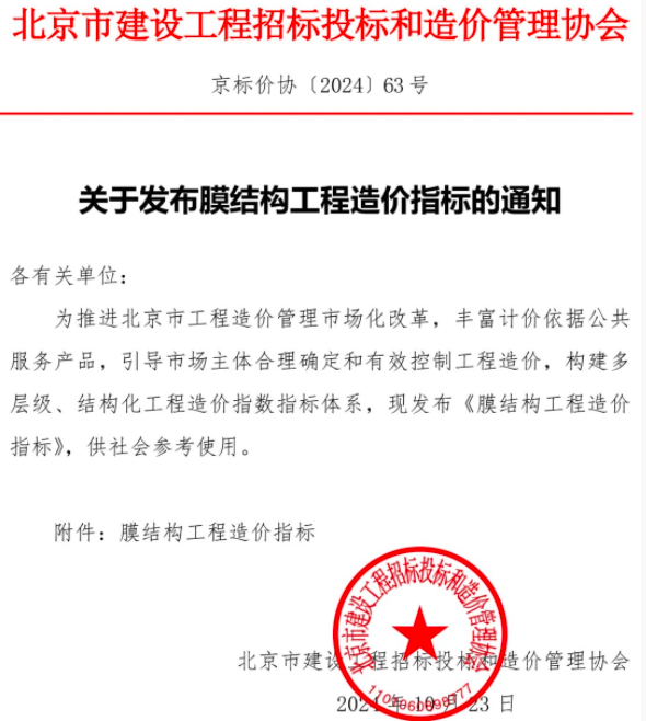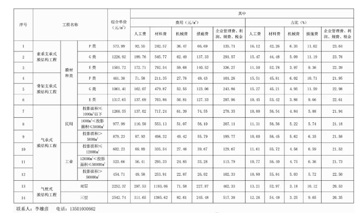 膜結(jié)構(gòu)工程【造價指標(biāo)】發(fā)布