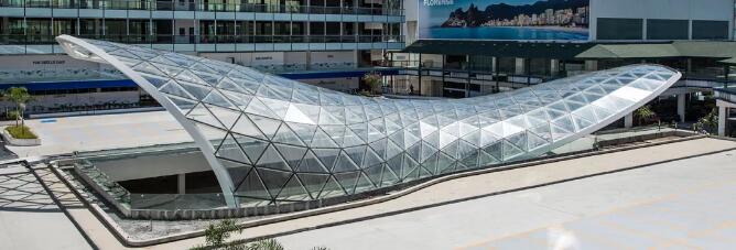 對于跨度比較小的天幕,采用單向梁或交叉梁即可實(shí)現(xiàn)。這一類天幕的結(jié)構(gòu)創(chuàng)新主要體現(xiàn)的網(wǎng)格布置、截面形式和節(jié)點(diǎn)細(xì)節(jié)方面。例如,網(wǎng)格布置可以是三角形、四邊形、聯(lián)方形、六邊形等等。