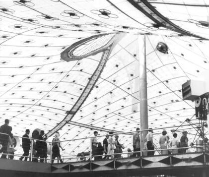 而該結(jié)構(gòu)在二十世紀(jì)的迅速發(fā)展,離不開(kāi)建筑師 Frei Otto 做出的巨大貢獻(xiàn),他對(duì)實(shí)驗(yàn)非常著迷,在可持續(xù)發(fā)展的概念普及之前,他已經(jīng)在實(shí)踐中體現(xiàn)了這一理念。根據(jù)紐約現(xiàn)代藝術(shù)博物館制作的他的職業(yè)生涯回顧展,“他被選入德國(guó)空軍,在第二次世界大戰(zhàn)期間擔(dān)任飛行員。在沙特爾的一個(gè)戰(zhàn)俘營(yíng)里,他被安排負(fù)責(zé)一個(gè)重建小組,要在沒(méi)有任何建筑材料的情況下修復(fù)橋梁和建筑物。Frei Otto 系統(tǒng)性的創(chuàng)新能力引領(lǐng)他找到了結(jié)構(gòu)解決方案,后來(lái)他作為學(xué)生時(shí)發(fā)現(xiàn),這些解決方案不是常規(guī)的工程實(shí)踐,而是真正的創(chuàng)新”。Otto 對(duì)張拉結(jié)構(gòu)進(jìn)行了大量的試驗(yàn),并做出了壯觀的重要作品,如慕尼黑奧林匹克體育場(chǎng)。“Frei Otto 的最小結(jié)構(gòu)理論被總結(jié)為:試圖通過(guò)最大程度利用結(jié)構(gòu)和材料,來(lái)充分利用現(xiàn)有建筑能源。因此他認(rèn)為,建筑師與其說(shuō)是設(shè)計(jì)師,不如說(shuō)是這種能源的組織者,也就是建筑中有關(guān)材料和勞動(dòng)力的總和。”