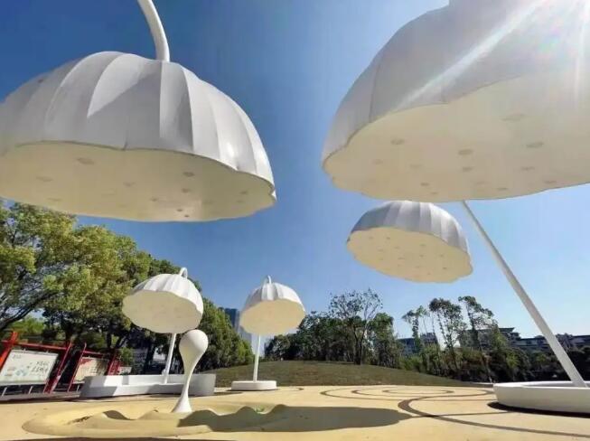 在已建成的口袋公園中,張拉膜結(jié)構(gòu)設(shè)施的身影屢屢出現(xiàn),正是因?yàn)閺埨さ奶匦允怪艿奖姸嘣O(shè)計(jì)者們的垂青,它體量可大可小,設(shè)計(jì)感強(qiáng),可作為遮陽遮雨,非機(jī)動(dòng)車棚,入口標(biāo)識(shí)等設(shè)施存在,也能作為景觀小品存在。張拉膜還可選用彩色膜材來打造,與口袋公園活潑明快的設(shè)計(jì)理念一致,若配上燈光裝置,夜晚更是溫馨。