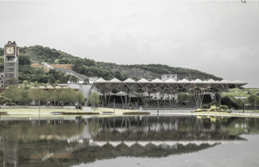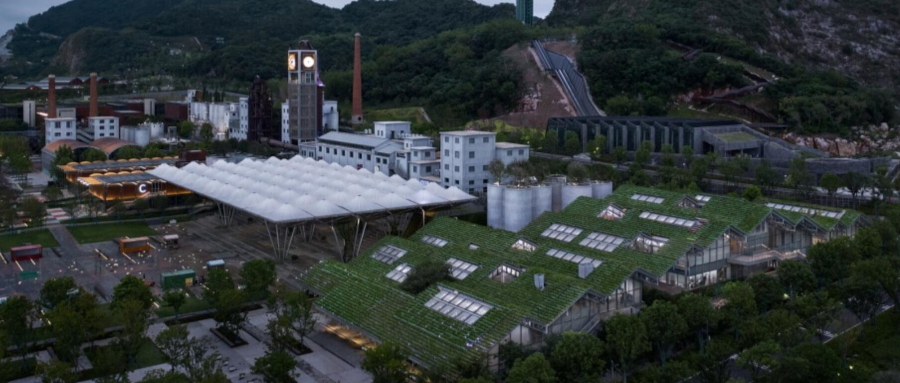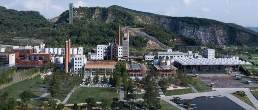 主展館選址在距離園博園西入口不遠(yuǎn)處的一處工業(yè)遺址?;貫榻ㄓ?/span>1970年代的兩座毗鄰的民營(yíng)水泥廠——“銀佳”和“昆元”白水泥廠。湯山的白水泥生產(chǎn)起源于民族工業(yè)初起的20世紀(jì)初,麇集在山谷中的眾多民營(yíng)小廠均脫胎于孫中山興辦的中國(guó)水泥廠,銀佳和昆元白水泥廠就是其中之二。