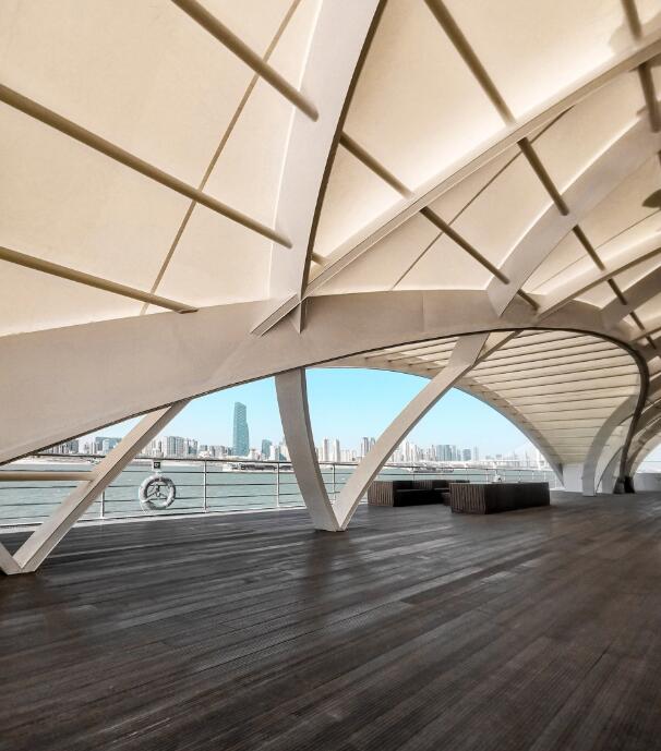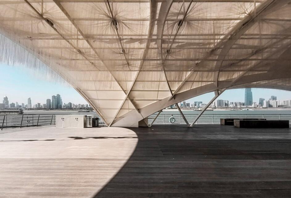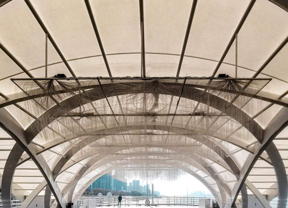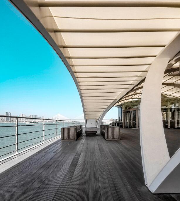 頂棚采用半透明的張拉膜結構。我們按照過往在建筑領域的慣例,先提交了一個自認為可行的鋼結構形式,等待船舶設計師的溝通或是修改意見,然后進入建筑與結構相互磨合的漫長階段。