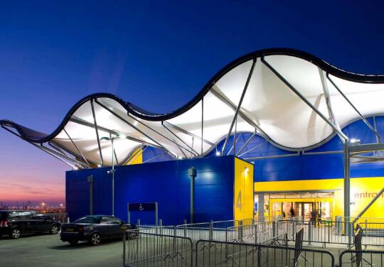 近年來膜結(jié)構(gòu)形式的門頭設(shè)計(jì)越來越多,膜材材質(zhì)輕,安全性高,透光率好,塑造的門頭外形優(yōu)美、造型獨(dú)特,充滿著時(shí)尚韻味,大氣而不失穩(wěn)重。