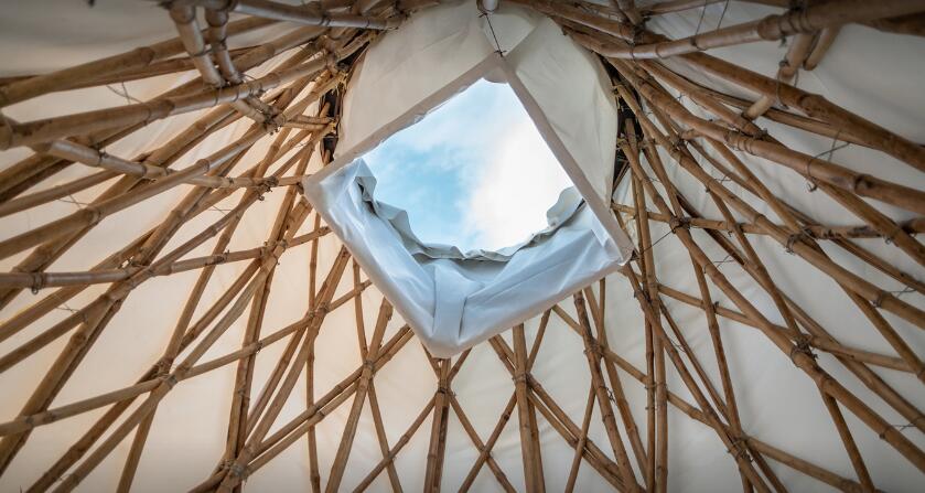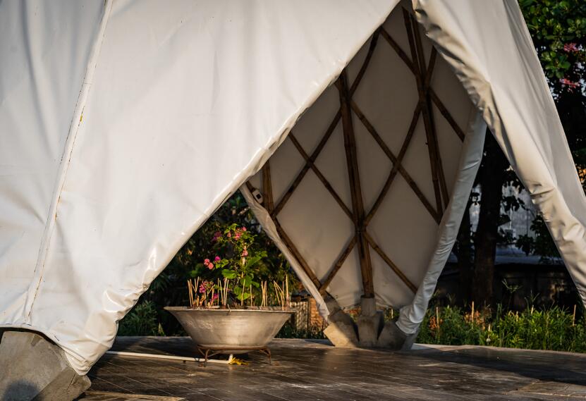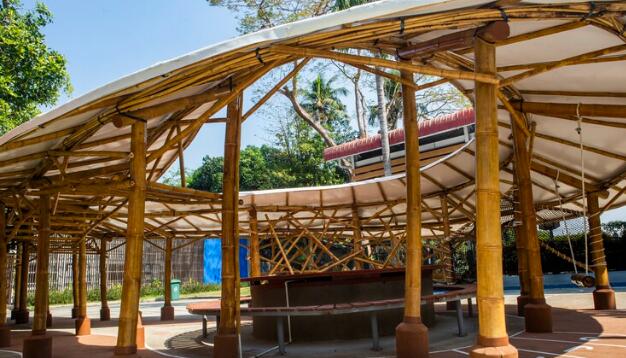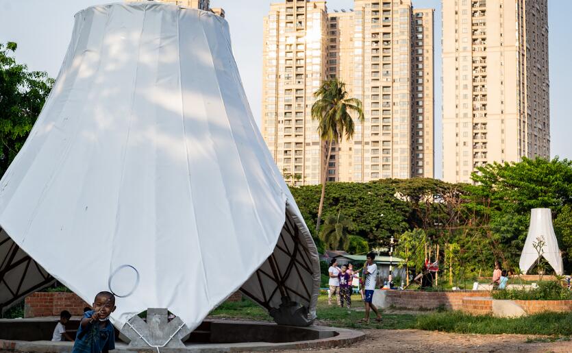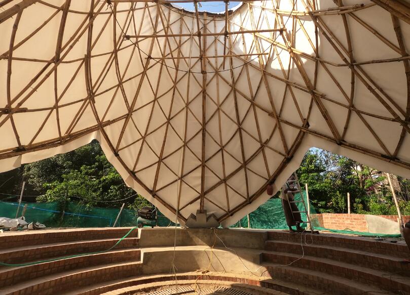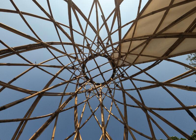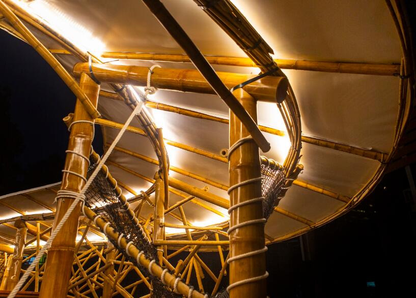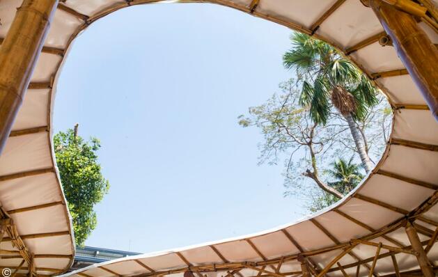 這個(gè)項(xiàng)目位于城市中心,并被實(shí)際建造出來(lái),其目標(biāo)是向世界展示竹子作為一種碳足跡極低的生態(tài)材料在建筑業(yè)中的可能性。利用現(xiàn)代的竹子處理技術(shù)來(lái)建造大型的持久結(jié)構(gòu),此外,外圍護(hù)采用目前流行的新材料膜材來(lái)實(shí)現(xiàn),更凸顯其環(huán)保安全性能。