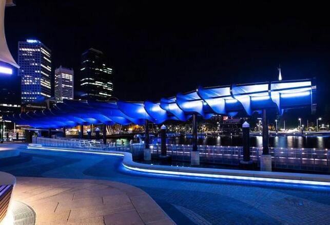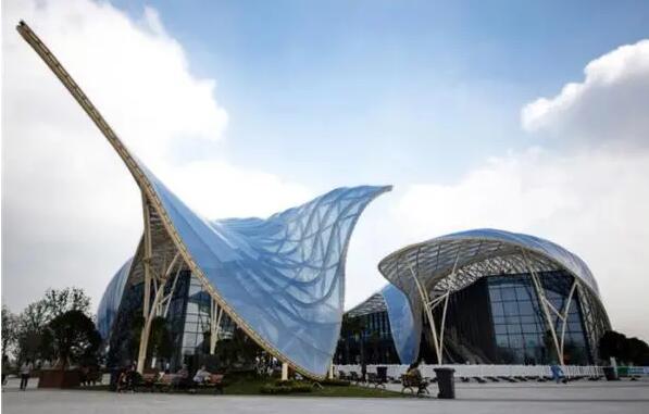 建筑入口材質(zhì)若采用ETFE膜材料,將不再局限于規(guī)則的形態(tài),可以營造出豐富的外觀形態(tài)效果,從而凸顯現(xiàn)代特色。另外,由于ETFE膜具有良好的透光性,夜晚借助照明系統(tǒng)和數(shù)控技術,能使整個出入口如燈籠般通體透亮,藝術效果出眾,具有一定的時尚感,能很直觀的增加公眾的吸引力。