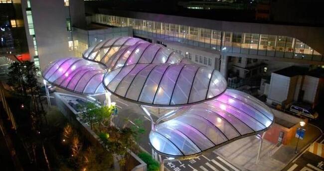綜上所述,可見入口對于建筑的重要性,由于膜結構自然的曲線美是其他結構類型無法比擬的,故成為近來建筑入口及屋頂經(jīng)常采用的形式。