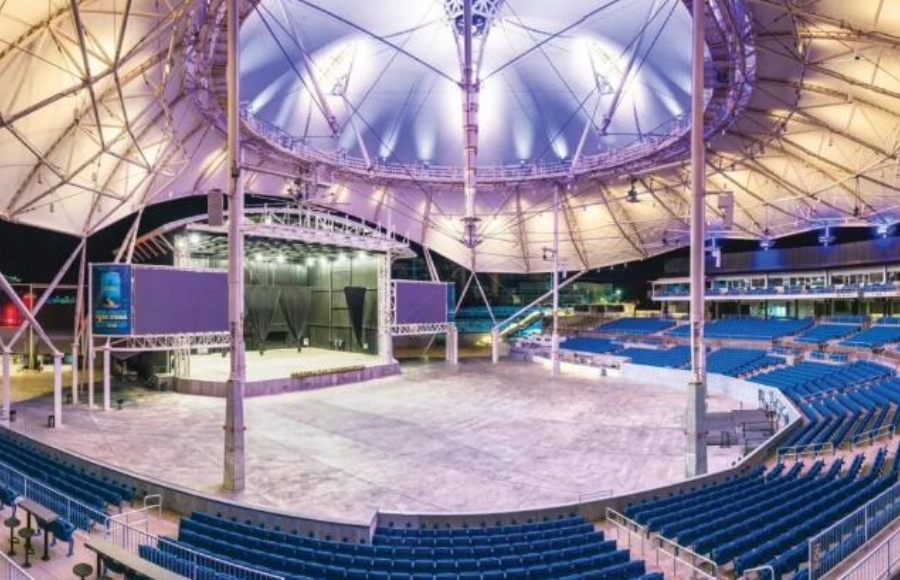 哈特福特市醫(yī)療保健機構(gòu)圓形劇場采用反光的PTFE膜材。在穹頂桅桿接觸屋頂織物的部位,F(xiàn)TL使用ETFE膜材以獲取更多的光線射入。同時,在穹頂和下部圍護結(jié)構(gòu)之間采用黑色網(wǎng)格膜提供被動散熱能力。