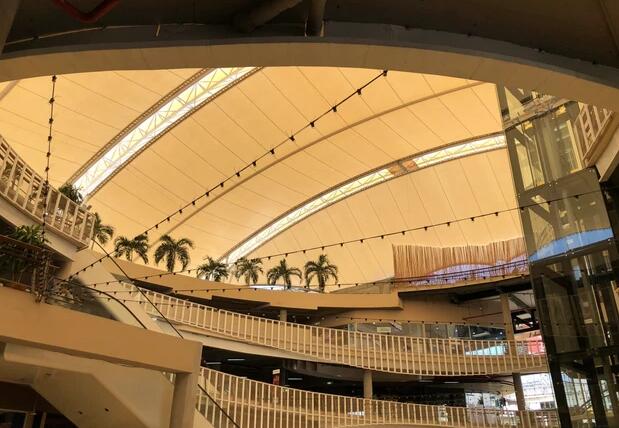 當(dāng)考慮用膜結(jié)構(gòu)形式來建設(shè)商業(yè)中心屋頂,需要了解其特點(diǎn)和設(shè)計(jì)原則。膜結(jié)構(gòu)屋頂是一種利用膜材料建成的屋頂結(jié)構(gòu),它集輕盈、美觀、大跨度、高透光、時(shí)尚等特點(diǎn)。在設(shè)計(jì)膜結(jié)構(gòu)屋頂時(shí),需要考慮建筑物的用途、氣候條件、結(jié)構(gòu)安全性和經(jīng)濟(jì)性等因素。