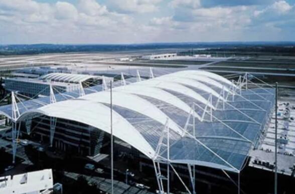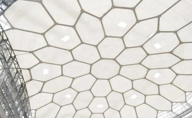 PTFE膜材料所采用的玻璃纖維是目前世界上最細的品種,具有良好的抗折疊和抗彎曲性能,PTFE膜材的生產、加工和安裝給予了膜結構屋面建筑最大的安全保障。