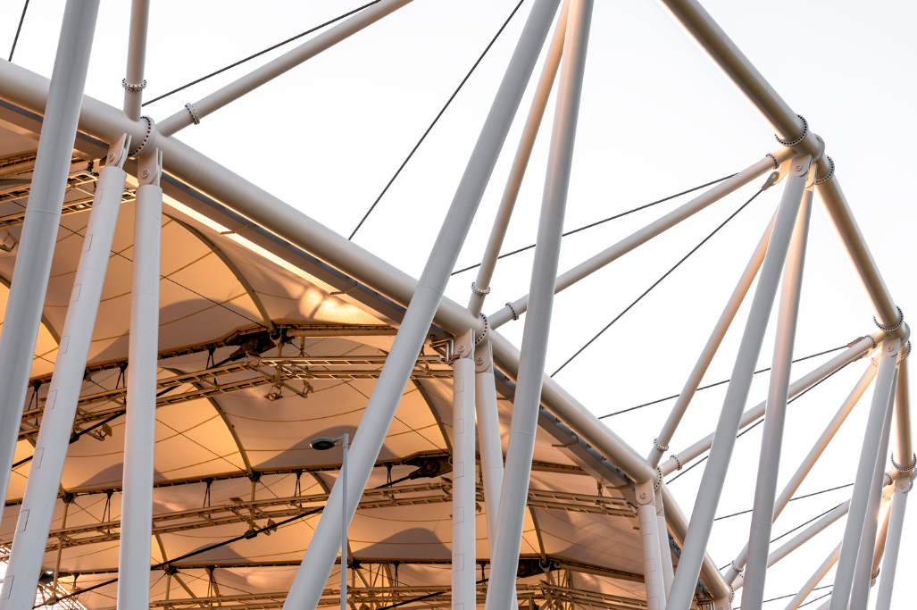 可伸縮膜結(jié)構(gòu)屋頂是一種能夠根據(jù)需要自由伸縮的屋頂設(shè)計(jì),通常由一系列可調(diào)節(jié)的結(jié)構(gòu)和技術(shù)組成,包括高強(qiáng)度膜材、優(yōu)質(zhì)鋼材、可伸縮桿、氣動(dòng)裝置等。這種屋頂?shù)脑O(shè)計(jì)原理是通過(guò)特殊設(shè)計(jì)的屋頂結(jié)構(gòu)和機(jī)械裝置,實(shí)現(xiàn)屋頂?shù)纳炜s和收縮功能。