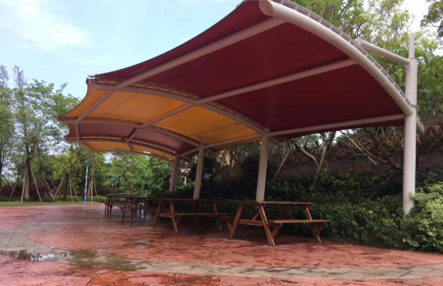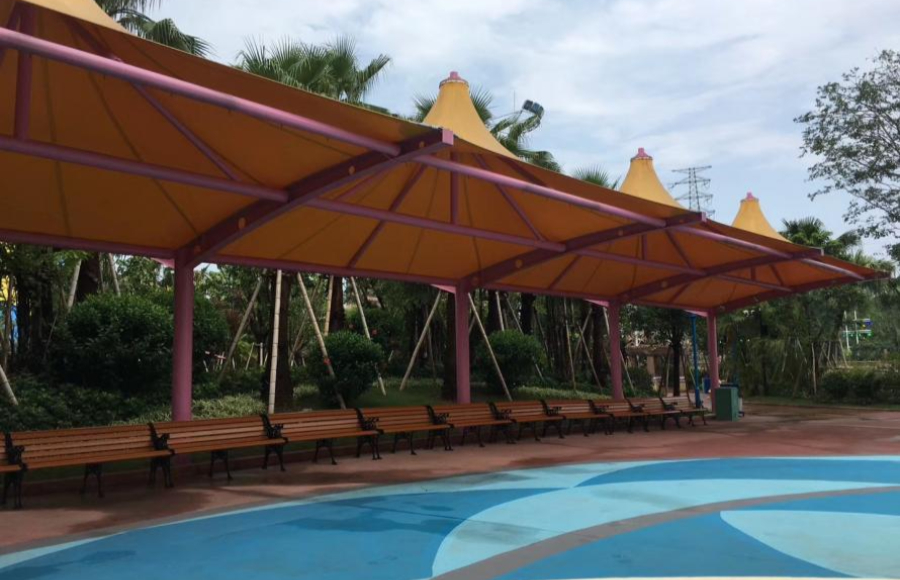 美的-鷺湖探索王國張拉膜項目位于佛山市高明區(qū)美的鷺湖森林度假區(qū)內(nèi),項目包含各種功用各種造型的膜結(jié)構(gòu)小型構(gòu)筑,這些膜結(jié)構(gòu)不僅遮陽避雨,還能起到美化作用。