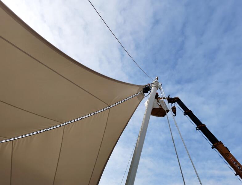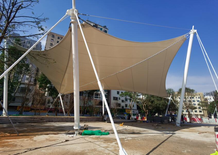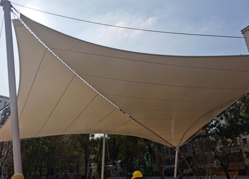 深圳寶安區(qū)廣場景觀膜結構遮陽棚工程完工,該遮陽棚設計為經典飛燕造型,整片張拉,簡潔大方,美觀兼實用,是居民休憩好去處。