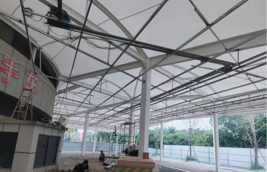 雙流二手車市場膜結(jié)構(gòu)工程施工進展