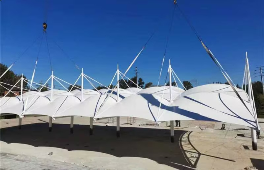 中山膜結(jié)構(gòu)停車棚工程施工進(jìn)展