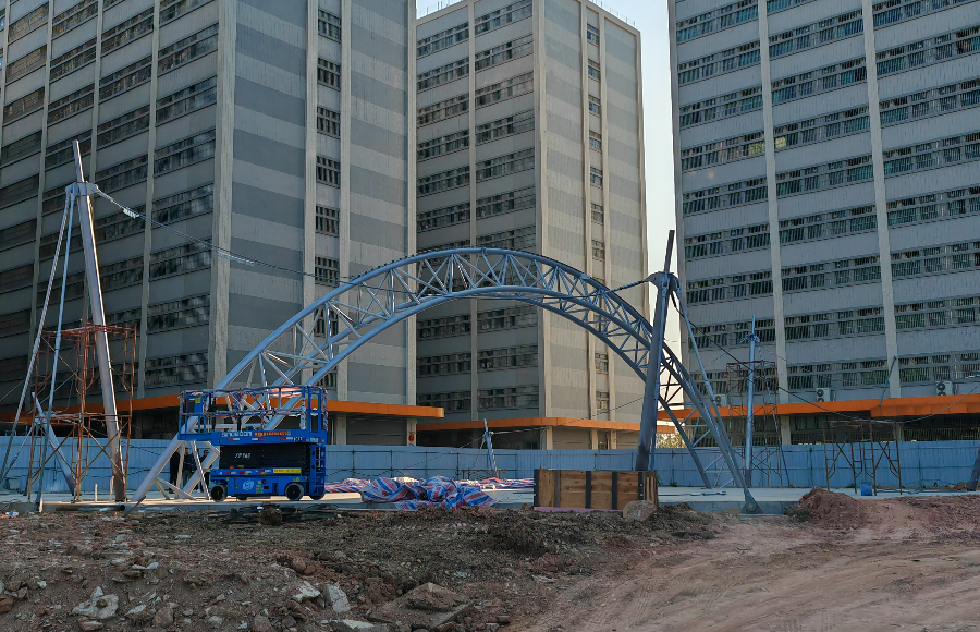 江門德昌電機(jī)膜結(jié)構(gòu)工程近日正在施工,目前已完成鋼結(jié)構(gòu)安裝,進(jìn)行膜材覆蓋工作,工程類型為膜結(jié)構(gòu)舞臺(tái)棚。