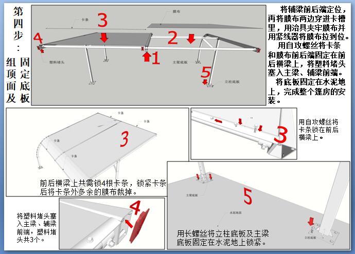 膜結(jié)構(gòu)停車棚安裝步驟說明如下: