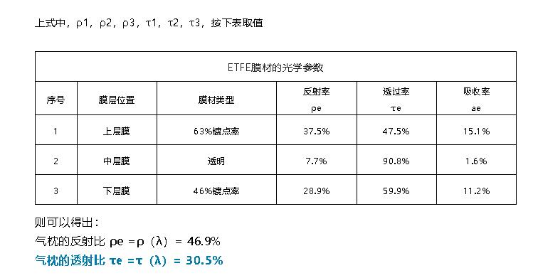 其實,可以看出上面的計算過程中,很多的參數(shù)取值參照了玻璃的參數(shù)。氣枕膜單元的遮陽系數(shù)的準確計算方法,還需要進行更多的相關(guān)實驗和理論研究。