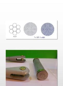 鋼絲束,捻距大、捻角小,因此鋼絲排列緊密、受力均勻,接觸應(yīng)力低,能夠充分發(fā)揮高強(qiáng)度鋼絲的性能,強(qiáng)度高、彈性模量大;但抗扭穩(wěn)定性差,需要現(xiàn)場(chǎng)捻制。